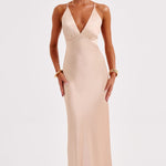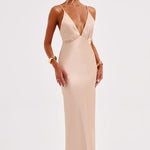 Izrađena od našeg super luksuznog, rezanog satena s prekrasnim sjajem, Anja maxi haljina lagano obavija tijelo za savršen fit. Savršena haljina za stvaranje uspomena, ima dubok V-izrez i delikatne naramenice.