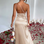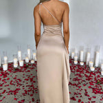 Osjećajte se kao božica koju jeste u Ariel, našoj premium haljini izrađenoj od luksuznog, laganog satena s elastinom koji se prilagođava vašim oblinama. S drapiranim detaljima i dizajnom na jedno rame, maxi haljina dodiruje pod i završava s visokim prorezom do buta.