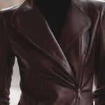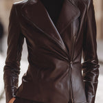 Mooyius Tamno Mocha Sako - savršena kombinacija sofisticiranosti i ženstvenosti. Ovaj elegantni sako izrađen je od glatke umjetne kože s mekim mat sjajem, osiguravajući urbanu eleganciju.
