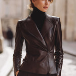 Ova tamno mocha nijansa dodaje toplinu i dubinu, čineći je savršenom alternativom tradicionalnoj crnoj. Kombinirajte s krojenim hlačama za poslovnu eleganciju ili uskim trapericama za večernju sofisticiranost. Ovaj sako je potpisni komad Mooyius - hrabar u dizajnu, minimalan u izjavama i bezvremenski privlačan.