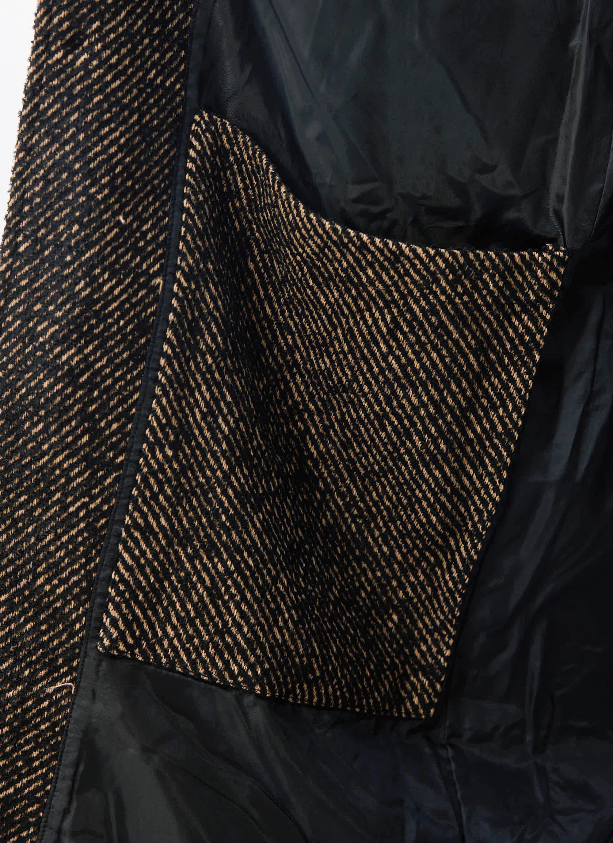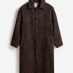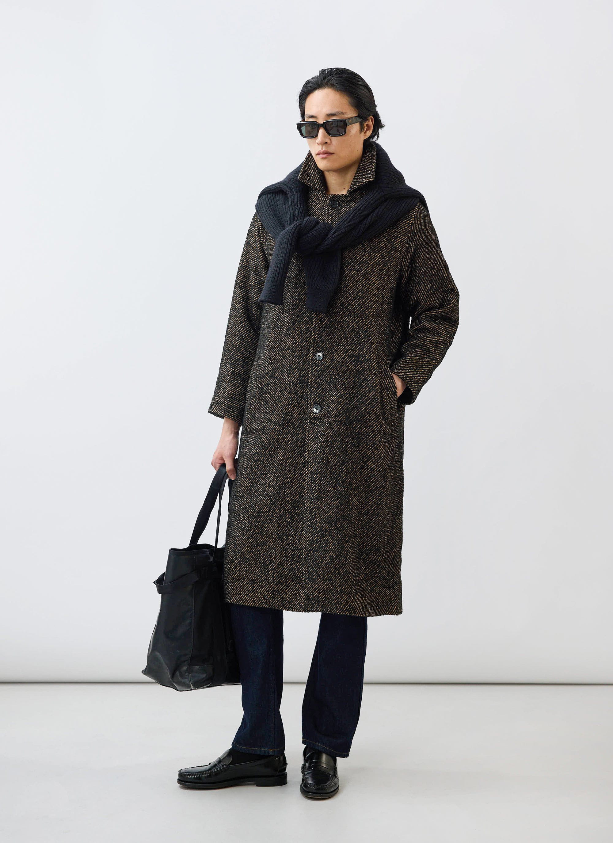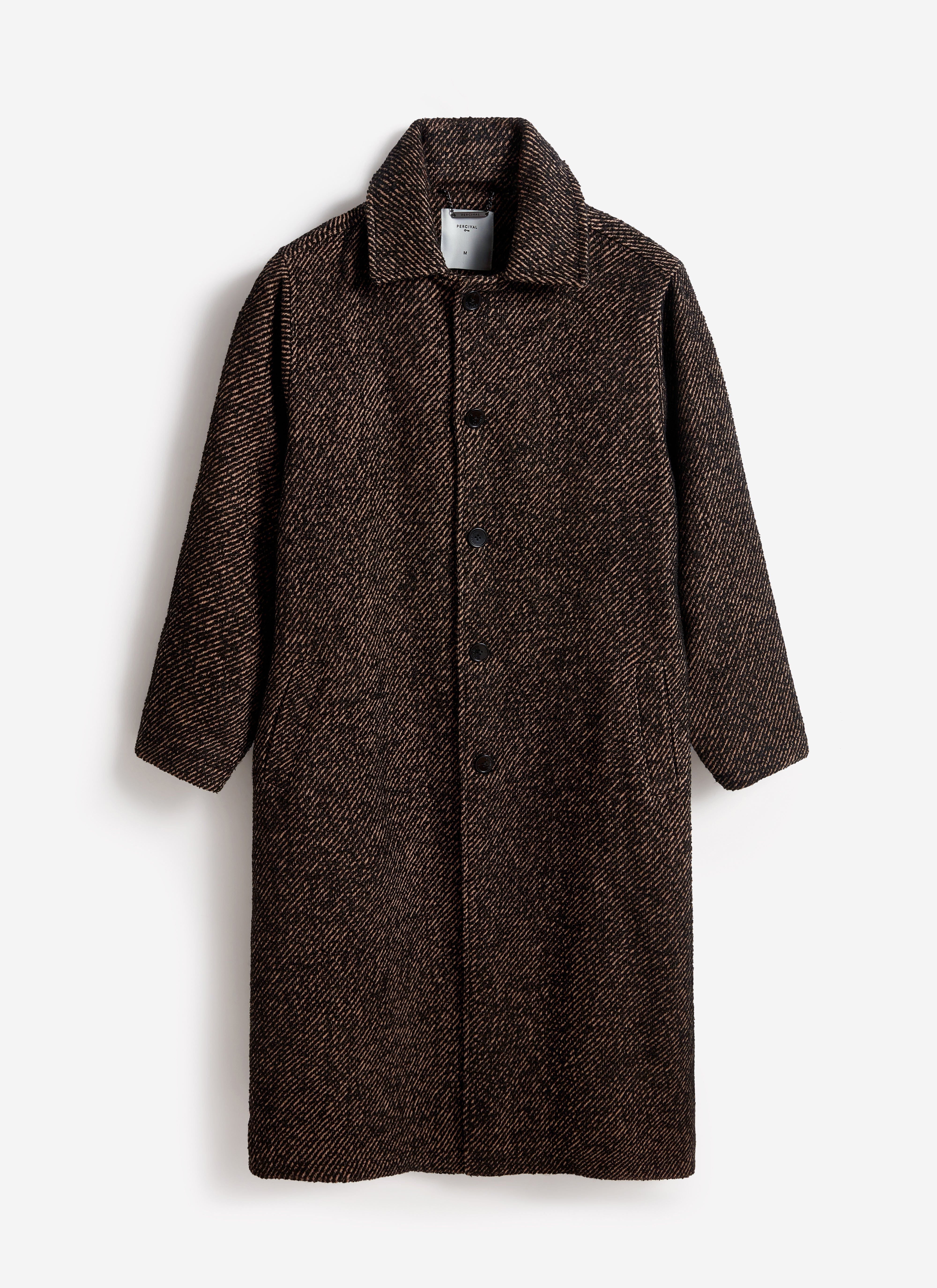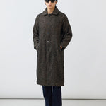• Karakteristike: Muški dugi trench kaput u hrastu izrađen od premium twilla. Dizajniran s podstavljenim unutarnjim dijelom za toplinu i prozračnost, raširenim ovratnikom, prednjim dugmadi, i unutarnjim džepovima za pohranu. Dugi vunski kaput s oversized krojem koji je idealan za slojevito odijevanje tijekom hladnijih sezona, završen u crno-smeđem ribljem kostimu.