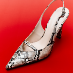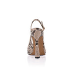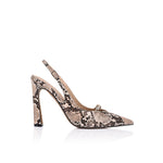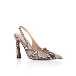 Izrađena u neutralnoj koži s uzorkom zmije, ova pumpa s zatvorenim nosom nudi: