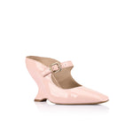Quinn spaja modernu ženstvenost s skulpturalnim dizajnom. Ove upečatljive potpetice, izrađene u mekoj ružičastoj nijansi, dolaze s elegantnim Mary-Jane trakama i karakterističnom zakrivljenom klinastom petom koja pruža visinu i stabilnost.