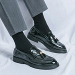 Objevte sofistikované mokasíny s leštěnou povrchovou úpravou a precizním prošíváním , které zdůrazňují vynikající řemeslné zpracování.