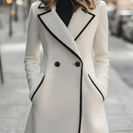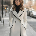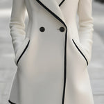 • Elegantní design: Kontrastní černé lemování podél klopy, kapes a spodního lemu.