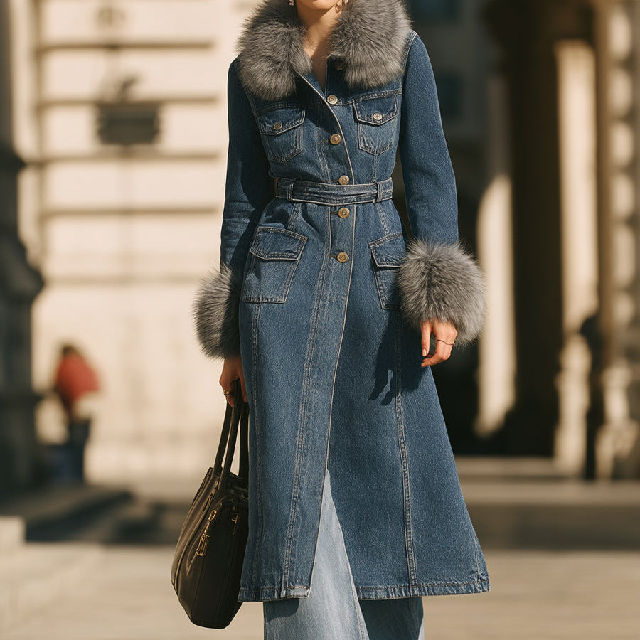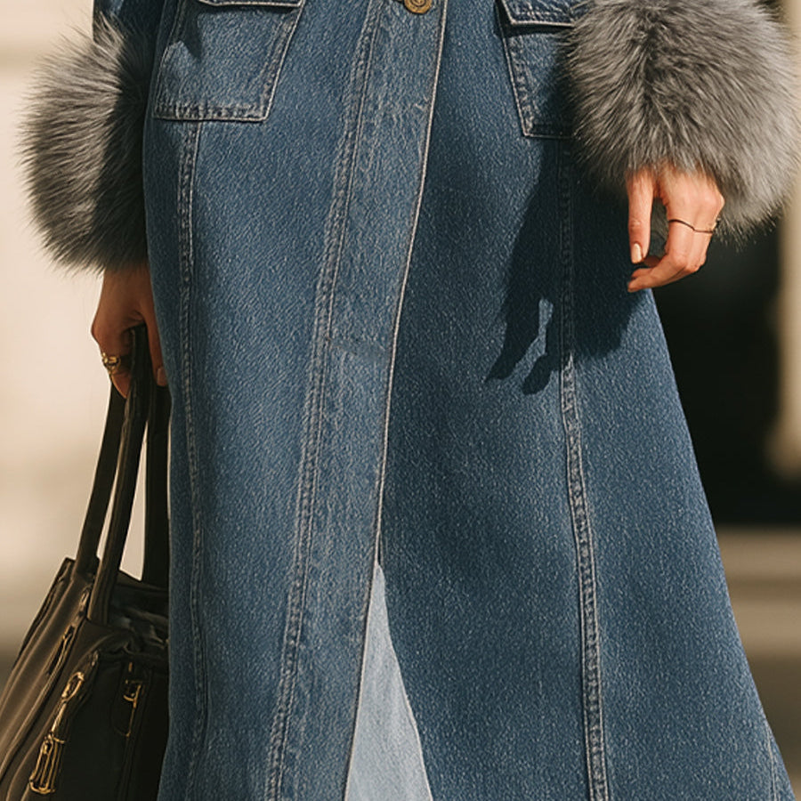 Džínový trenčkot s límcem