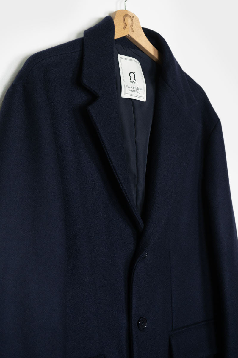 Dlouhý kabát Gilberto je elegantní a všestranný svrchní oděv vyrobený z recyklované vlny, navržený pro dlouhou životnost. Tato zimní bunda je vyrobena z teplé vlněné tkaniny, recyklované podle tradice česání v Pratu. Podšívka Gilberto je vyrobena z recyklovaného polyesteru.