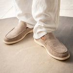 Tyto semišové mokasíny, vyrobené s klidnou elegancí , balancují mezi rafinovaným minimalismem a každodenním pohodlím. Bezešvá silueta s precizním prošíváním nabízí elegantní vzhled , zatímco měkká textura dodává sofistikovaný nádech . Tento všestranný kousek je ideální pro pozvednutí ležérního i střiženého vzhledu.
