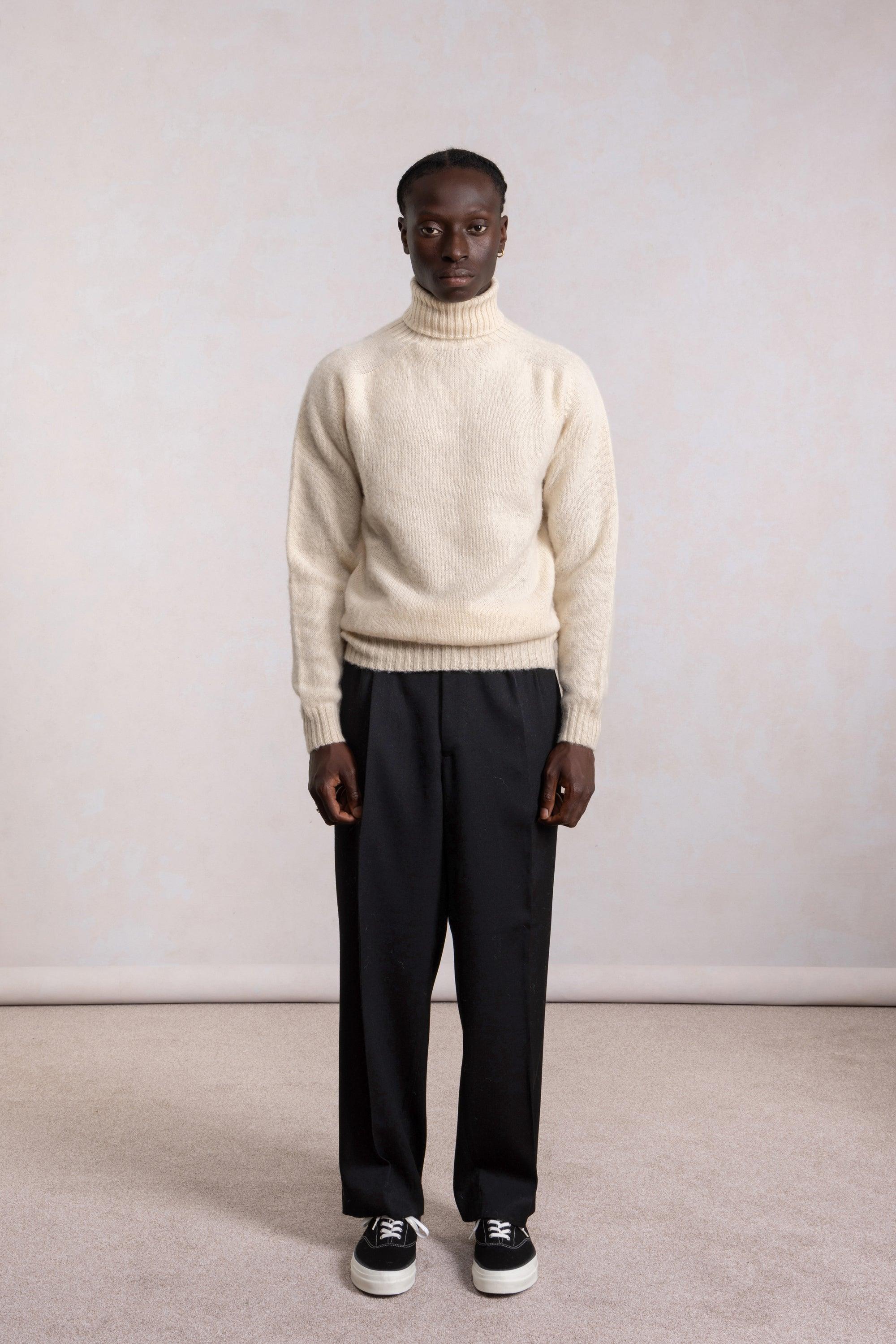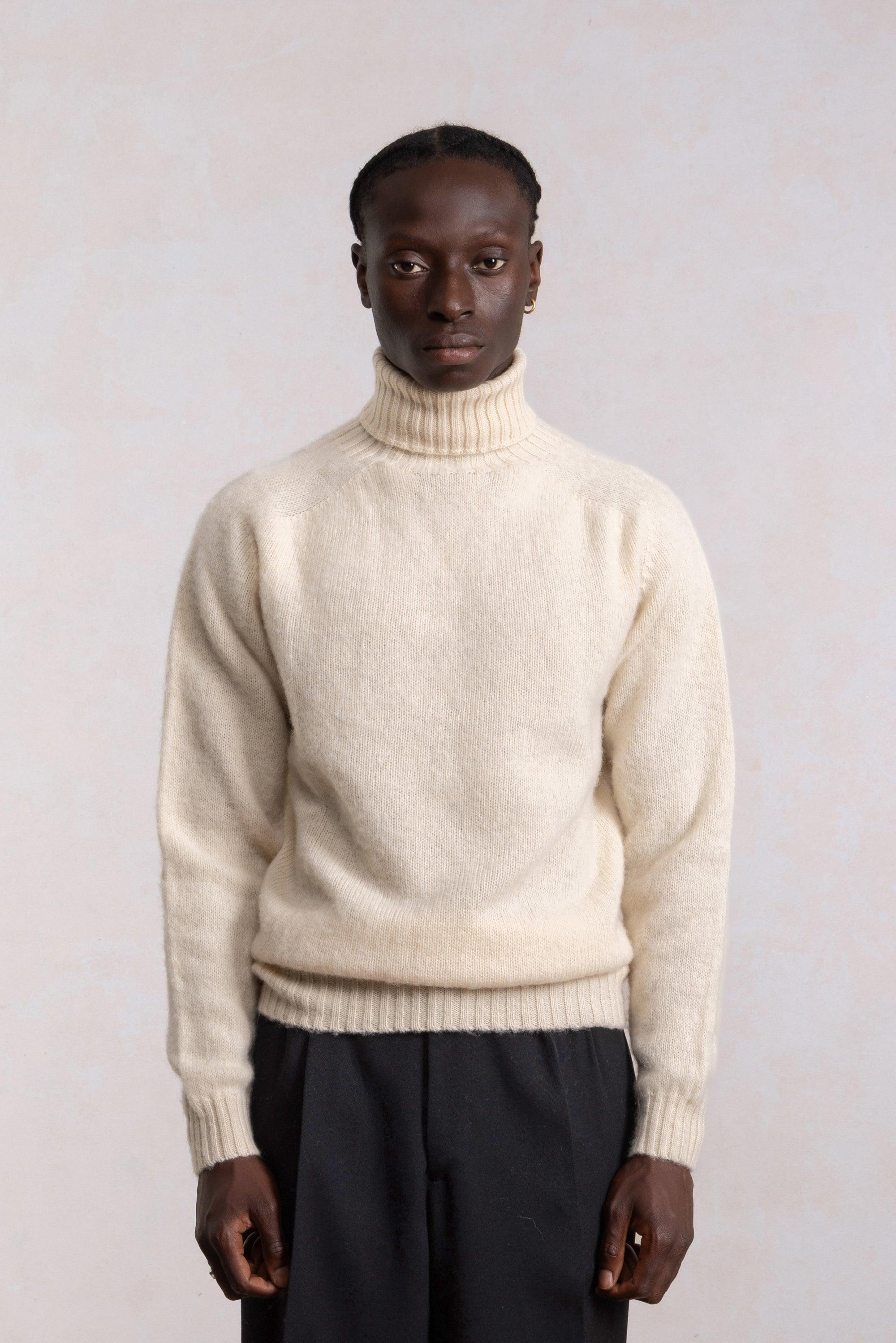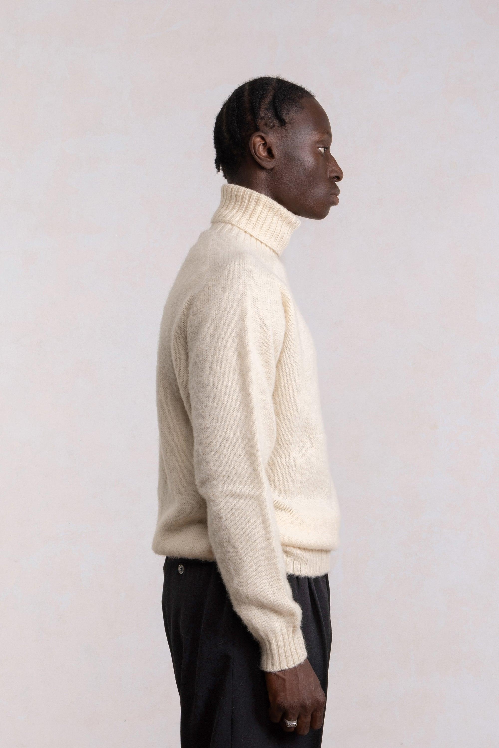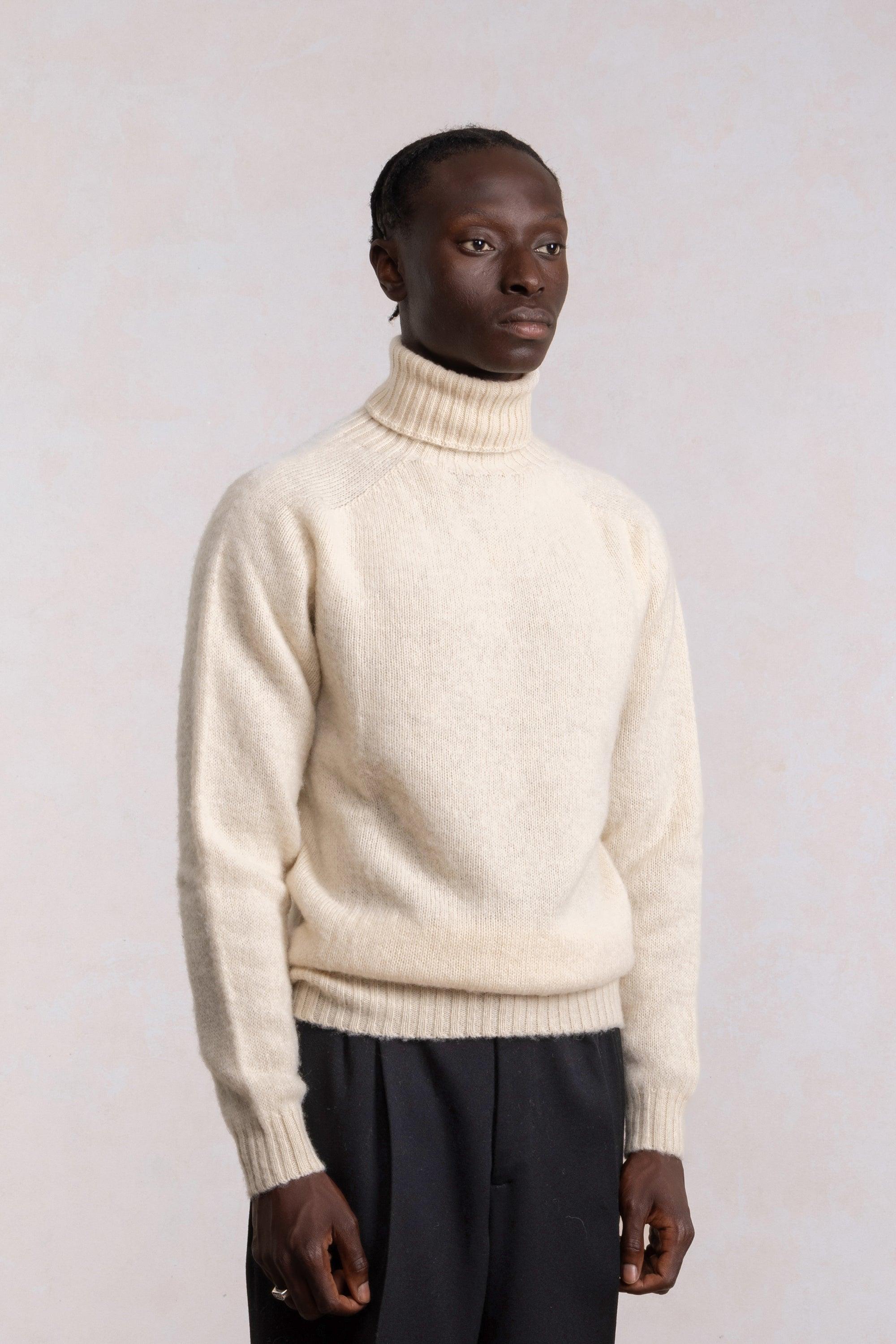 Díky rolovanému límci a výrazné textuře se Shaggy Dog perfektně hodí do přechodných a zimních outfitů.