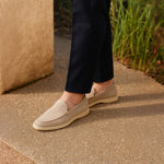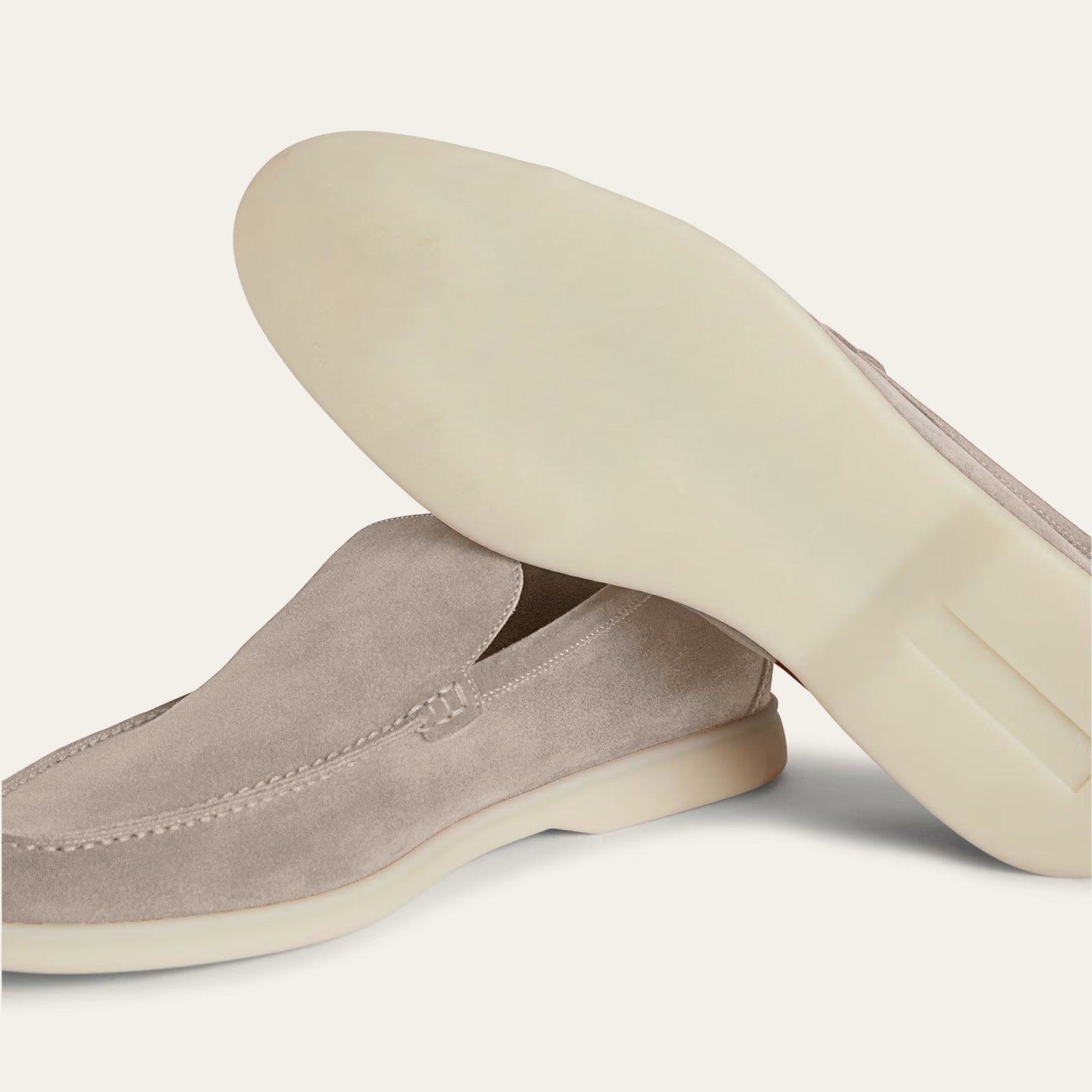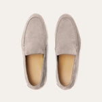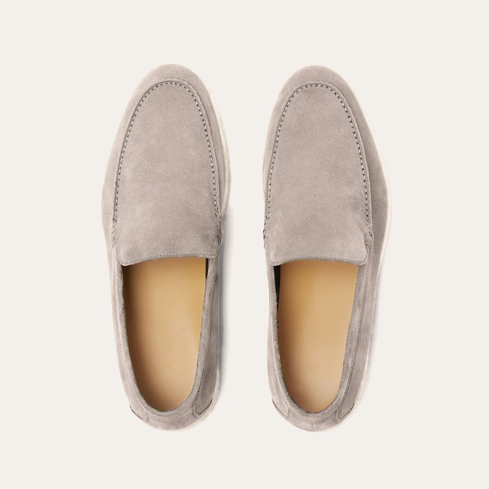 Jsou vyrobeny z prvotřídního semiše a bez podšívky pro větší měkkost a prodyšnost, takže se časem dokonale přizpůsobí vaší noze. Lehká gumová podrážka zajišťuje celodenní pohodlí, zatímco ručně šité překryvy a boční švy odrážejí tiché řemeslné zpracování detailů. Jsou navrženy pro pohodlí v teplém počasí a plynule přecházejí ze středisek do městských ulic, s ponožkami i bez nich.