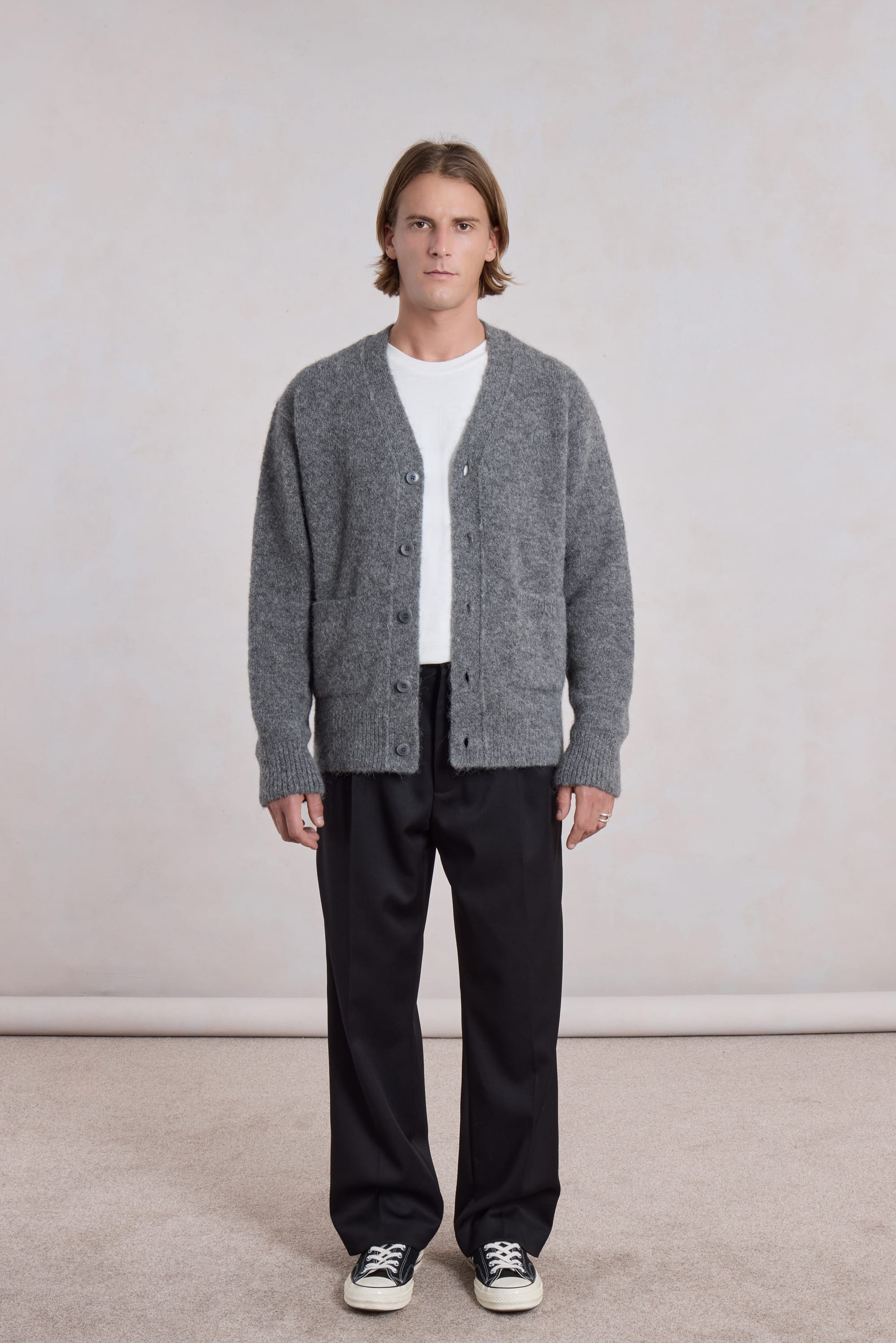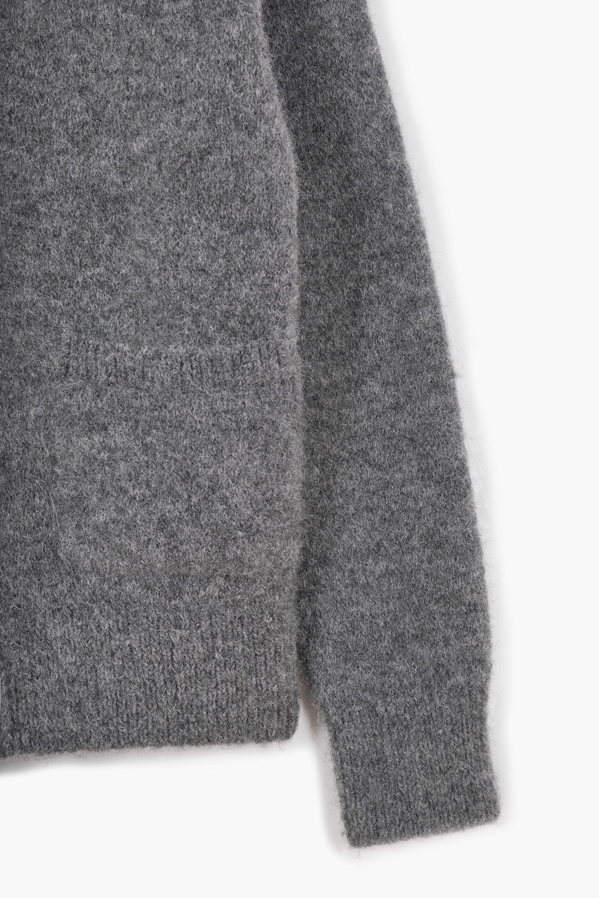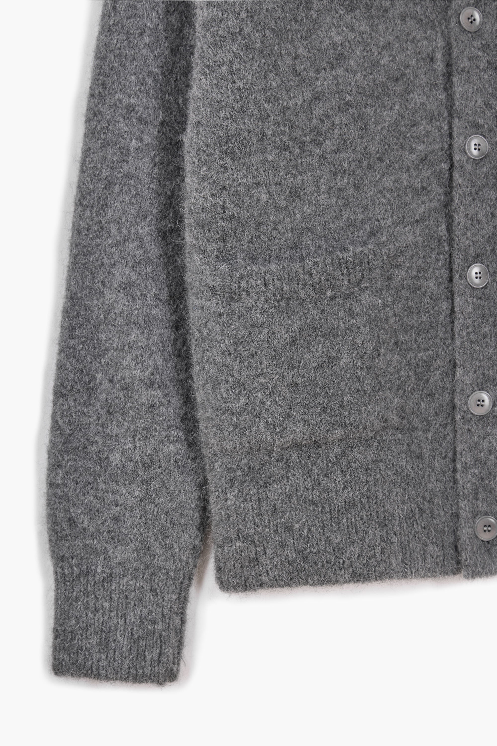 Kardigan volného střihu, který v sobě spojuje pohodlí, měkkost a jedinečnou texturu. Je pleten z italské příze s pletením z 87 % baby alpaky ( zóny dospělých vlasů, kde jsou vlasy řidší), doplněný polyamidem a elastanem nezbytnými pro jeho tvar, zaujme svým vzhledem chlupatého a nadýchaného materiálu.
