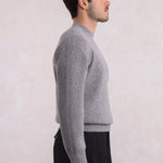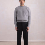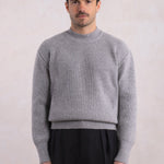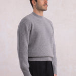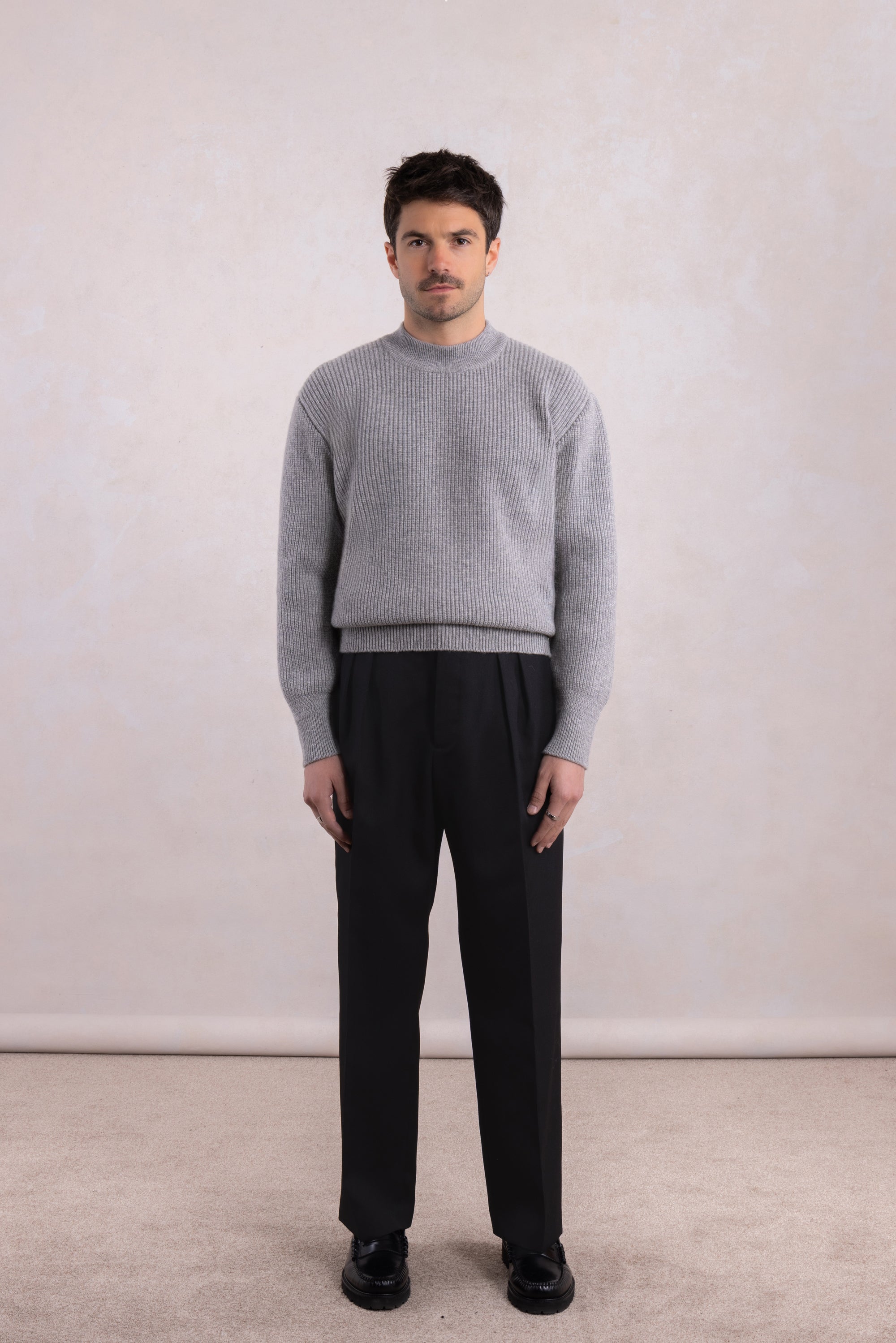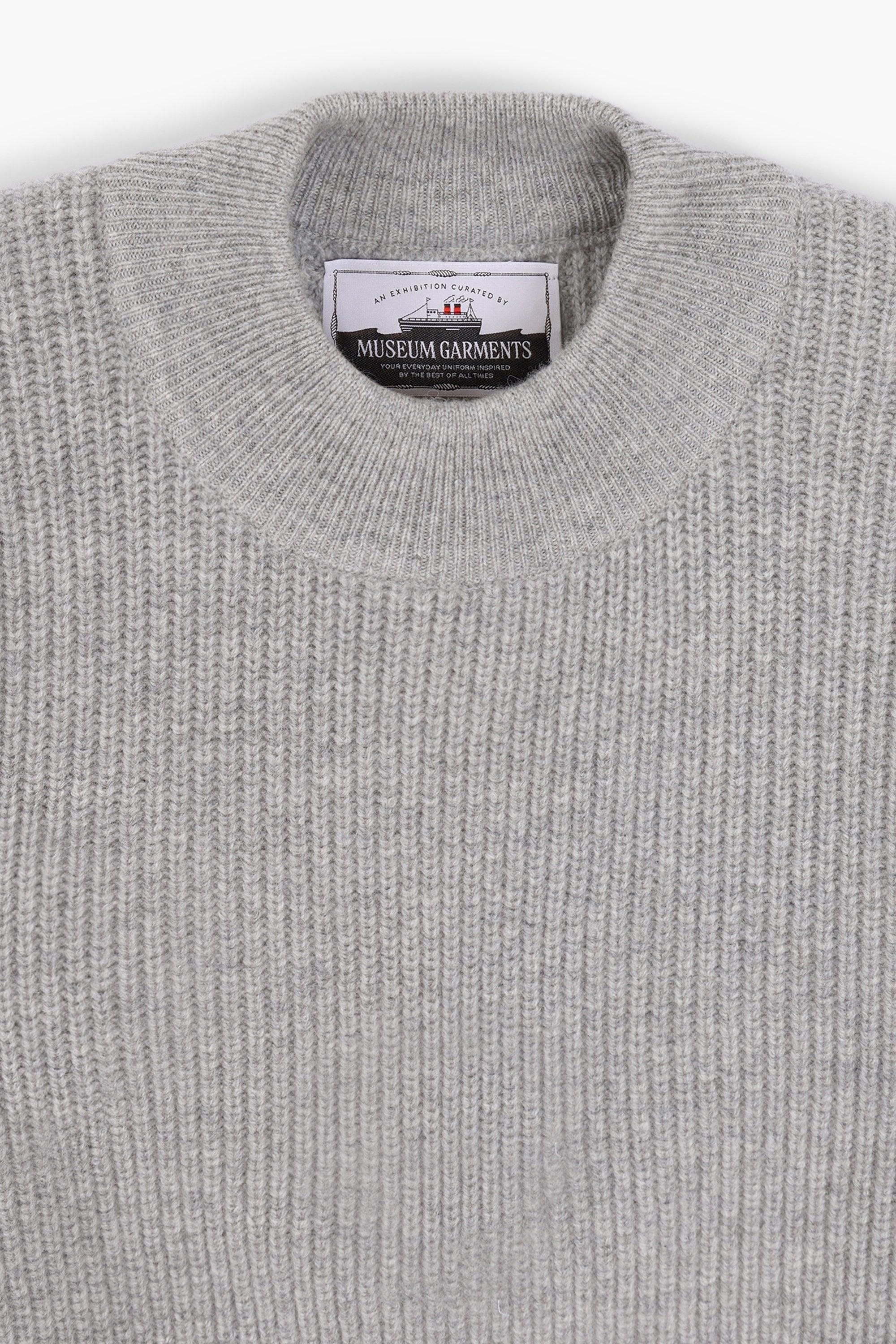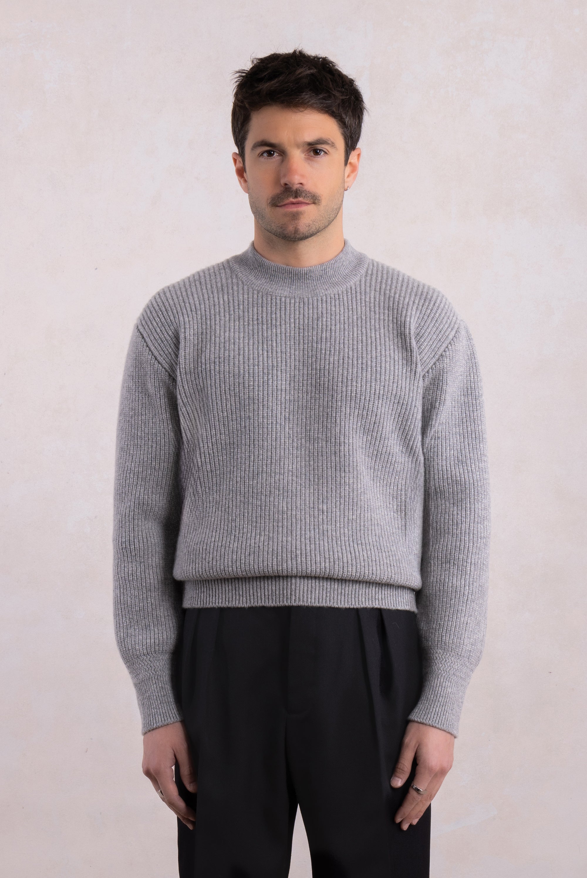 Tento svetr z jehněčí vlny, inspirovaný svetry „Deck Sweater“, které nosilo americké námořnictvo během druhé světové války, je reinterpretován anglickým žebrováním (rybářským žebrováním) pro texturu, která je zároveň robustní a elegantní.