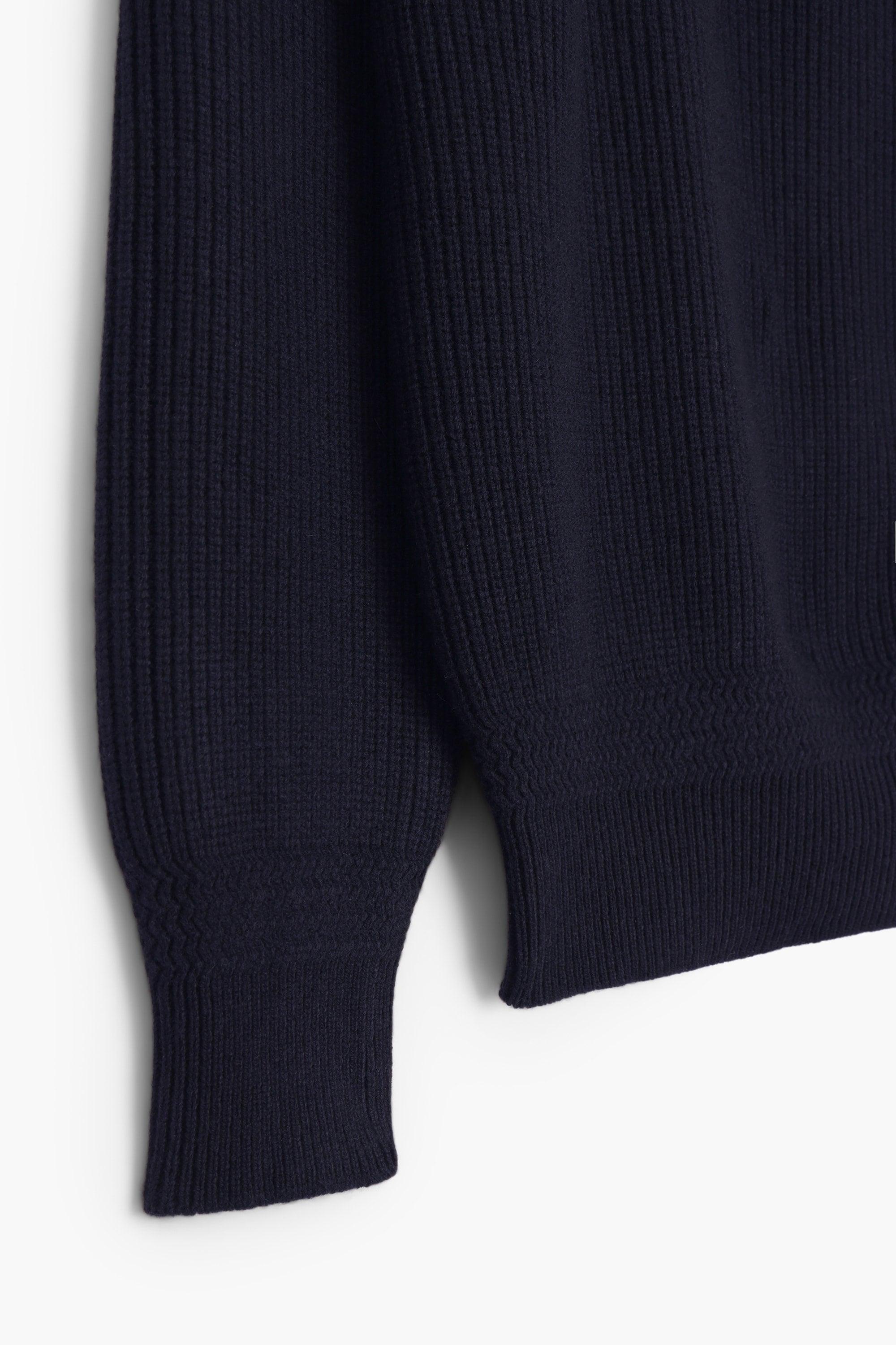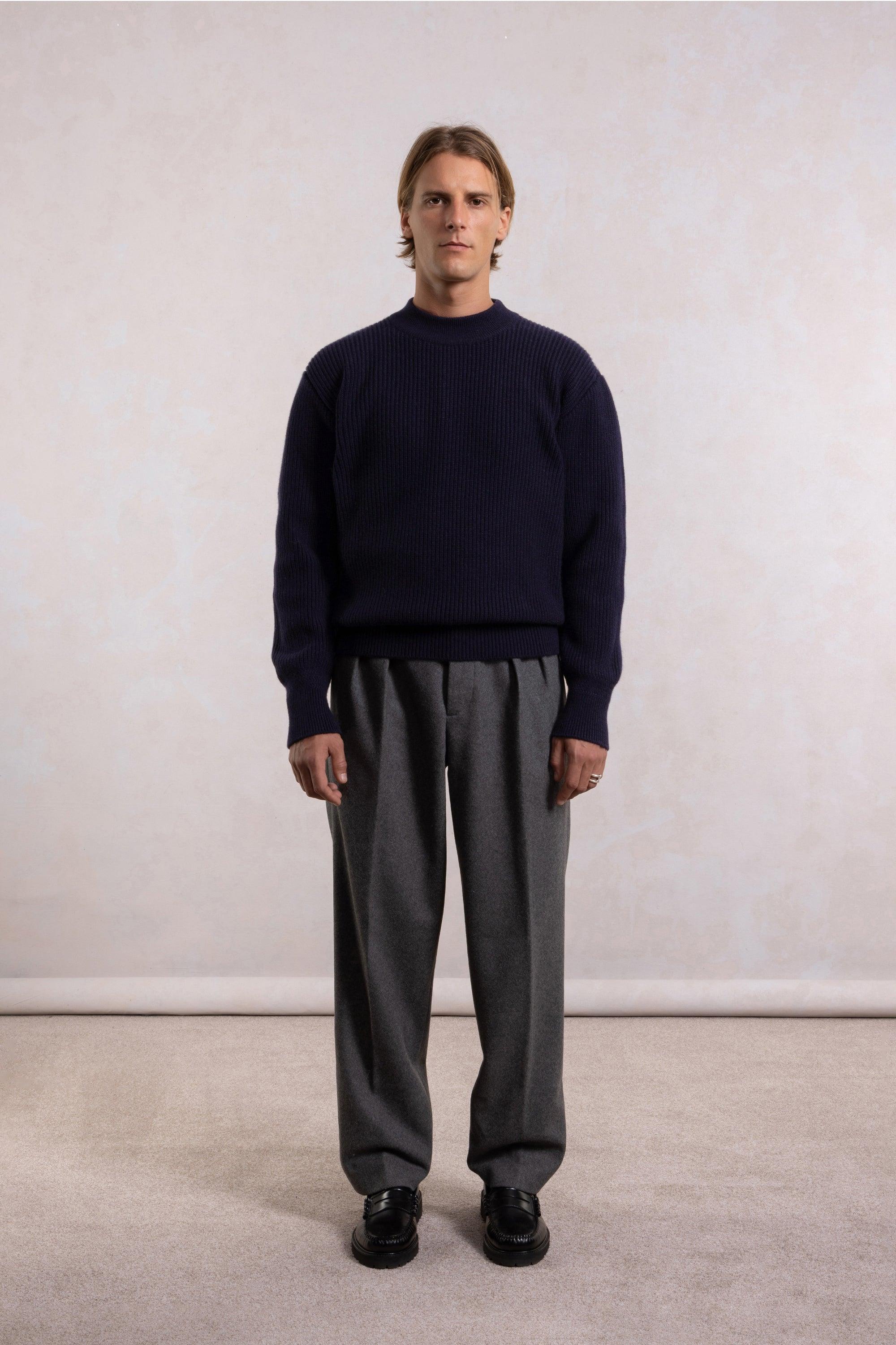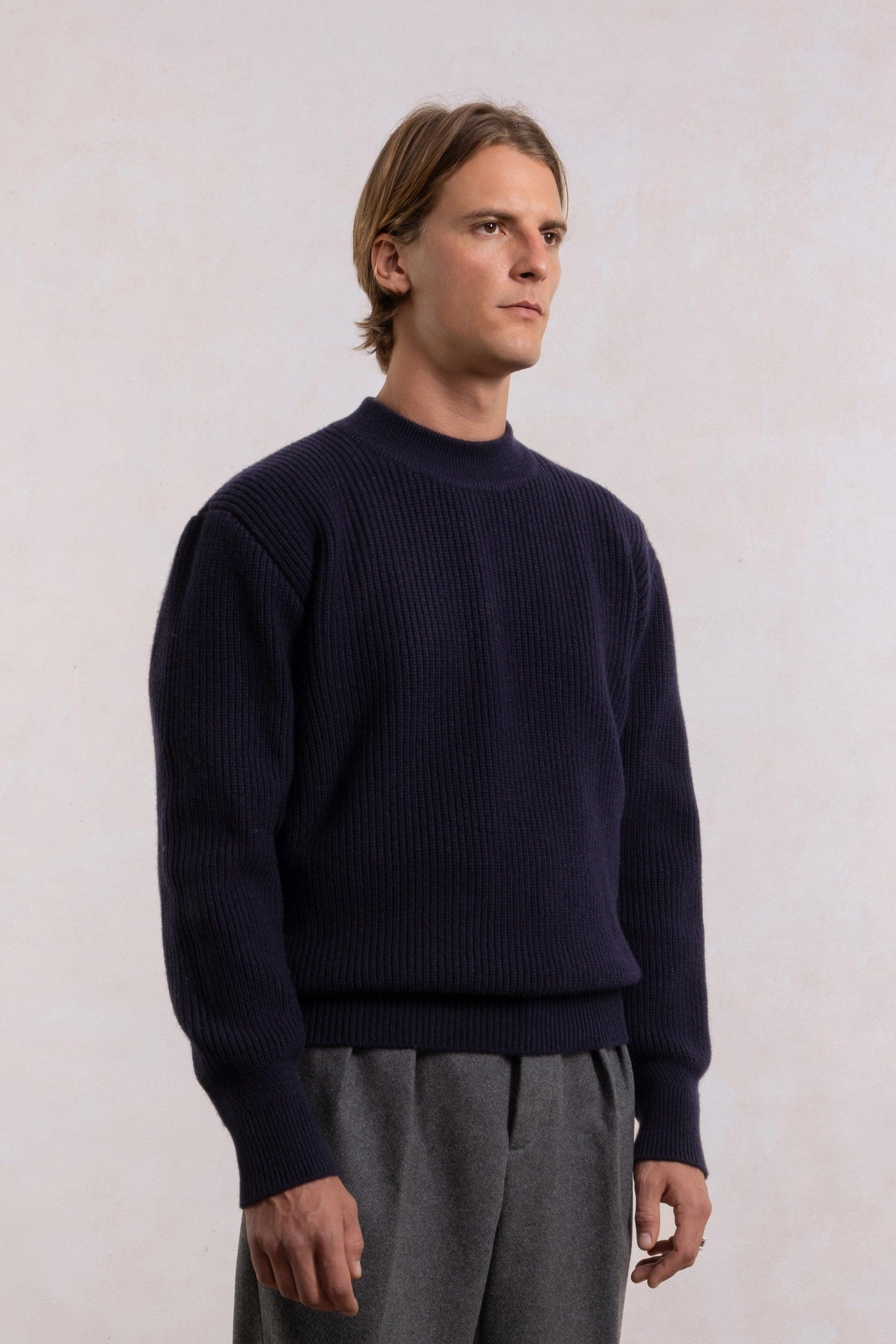 Svetr Deck je inspirován svetry amerického námořnictva z druhé světové války a přináší elegantní a robustní design s anglickým žebrováním (rybářským žebrováním) pro jedinečnou texturu.