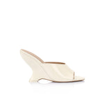 Klasické a elegantní sandály Martha z krémově bílé lakované kůže nabízejí moderní a rafinovaný vzhled. Díky klínku s otevřenou špičkou a zkosenému podpatku jsou ideální pro sofistikovaný doplněk vašeho šatníku.