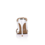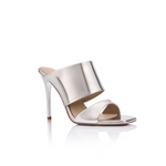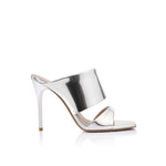 Montana přitahuje pozornost svou výraznou siluetou a tekutým leskem. Tyto sošné pantofle vyrobené z reflexní stříbrné zrcadlové kůže mají dva široké pásky, které výrazně rámují chodidlo.