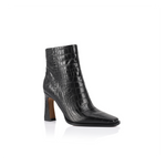 Zaujměte botami Sam Boots , vyrobenými z bohaté černé krokodýlí kůže , která vyzařuje tichou sebedůvěru. Tato moderní klasika se vyznačuje mírně hranatou špičkou, tvarovaným blokovým podpatkem a elegantní výškou kotníku .
