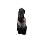 Výrazné a nadčasové sandály Sienna v černé barvě nově definují moderní minimalismus. Tyto sandály s jediným páskem z lesklého černého vinylitu kombinují eleganci s drsností díky výraznému hranatému podpatku z lucitu.