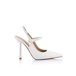 Představujeme Sophie , základní boty na podpatku Mary Jane, které v sobě spojují klasický styl s moderním nádechem. Tyto elegantní bílé boty na podpatku s ženskou špičatou špičkou a minimalistickým designem slingbacku se bez námahy hodí do denního i večerního stylu.