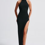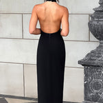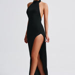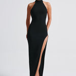 Sexy šaty s hlubokým výstřihem na zádech a elegantním vysokým výstřihem dělají z šatů Adalia ten pravý typ pro vás. Tyto maxi šaty, vyrobené z našeho prémiového strečového krepu, jsou skvěle padnoucí a mají rozpark až po stehna, který zdůrazní přesně tu správnou část nohavic. Dopřejte si elegantní vzhled s černými podpatky a mini kabelkou.