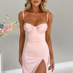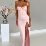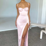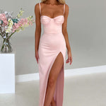 Pronađite svoju haljinu za vječnost u Alora, našoj najimpresivnijoj haljini napravljene za svaki poseban događaj u vašem kalendaru ove sezone. Dizajnirana u našem luksuznom, teškom satenu, ovaj rastezljivi stil je krojen blizu tijela za super uski izgled. Haljina dolazi s lijepim nabranim čašicama koje su s žicom, plus prorezom do butine.