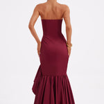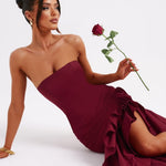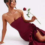 Uđite u svoju soft girl eru u Angelina maxi haljini, izrađenoj od naše luksuzne tkanine od pamuka koja se ne rasteže i koja se prilagođava tijelu za siluetu iz snova. Ovaj bez naramenica dizajn upotpunjuje voluminozna suknja s nabranim visokim i niskim rubom koja je super lijepa i razigrana.
