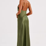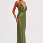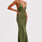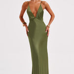 Izrađena od našeg super luksuznog, rezanog satena s prekrasnim sjajem, Anja maxi haljina prati tijelo za savršen fit. Savršena haljina za stvaranje uspomena, sadrži duboki V-izrez i delikatne naramenice.