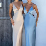 Izrađena od našeg super luksuznog, rezanog satena s prekrasnim sjajem, Anja maxi haljina se nježno prilagođava tijelu za savršen izgled. Savršena haljina za stvaranje uspomena, ima duboki V-izrez i delikatne naramenice.