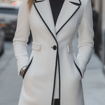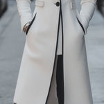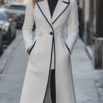 Mooyius Šik Dugi Bijeli Kaput s Kontrastnim Rubom unaprijedite svoj sofisticirani izgled s ovim modernim komadom. Ovaj kaput, izrađen od izdržljive premium mješavine vune, savršeno spaja toplinu i eleganciju.